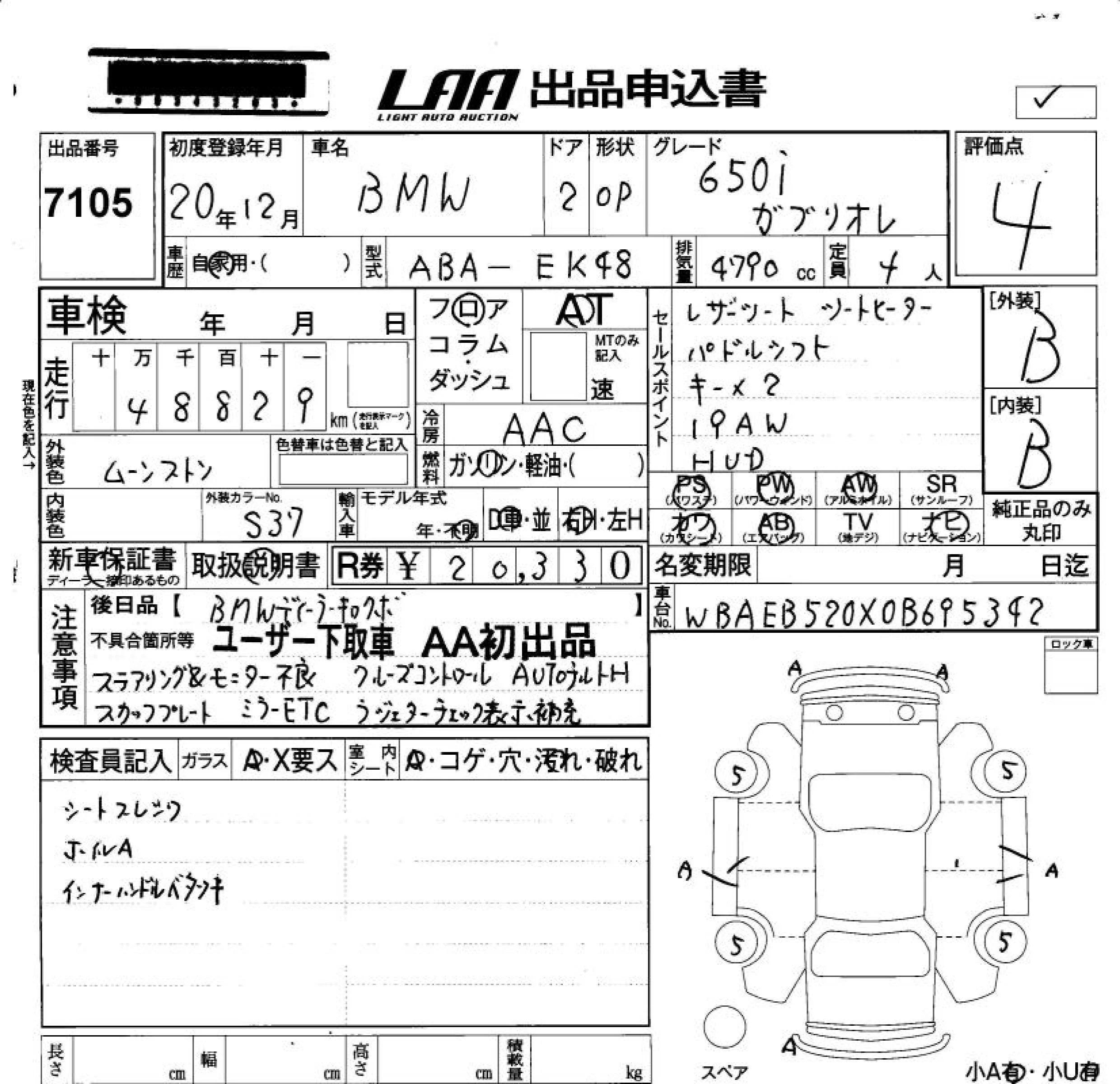 BMW 6-Series с аукциона Японии LAA Okayama лот № 7105