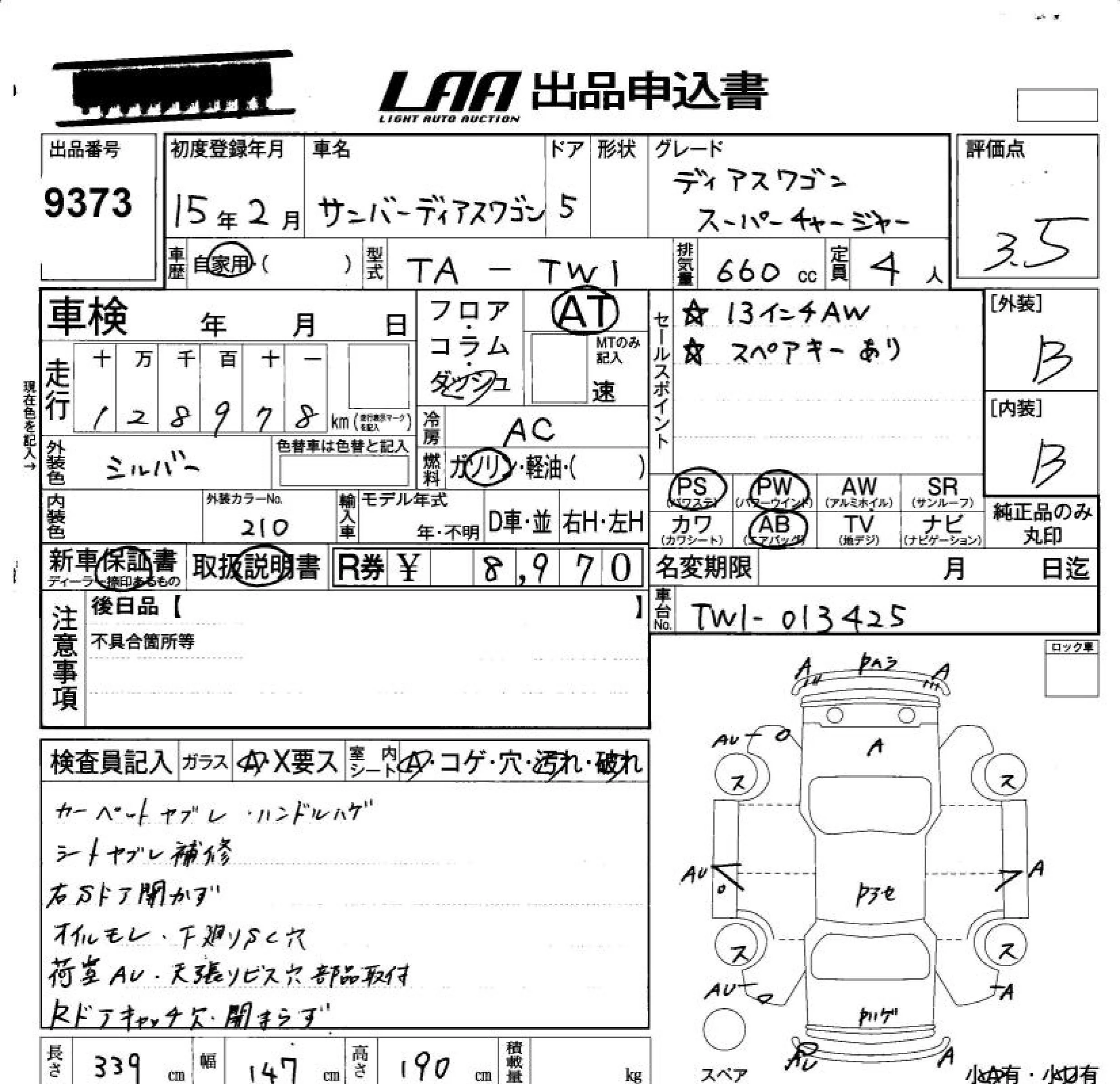 Subaru GOLF ALLTRACK с аукциона Японии LAA Okayama лот № 9373