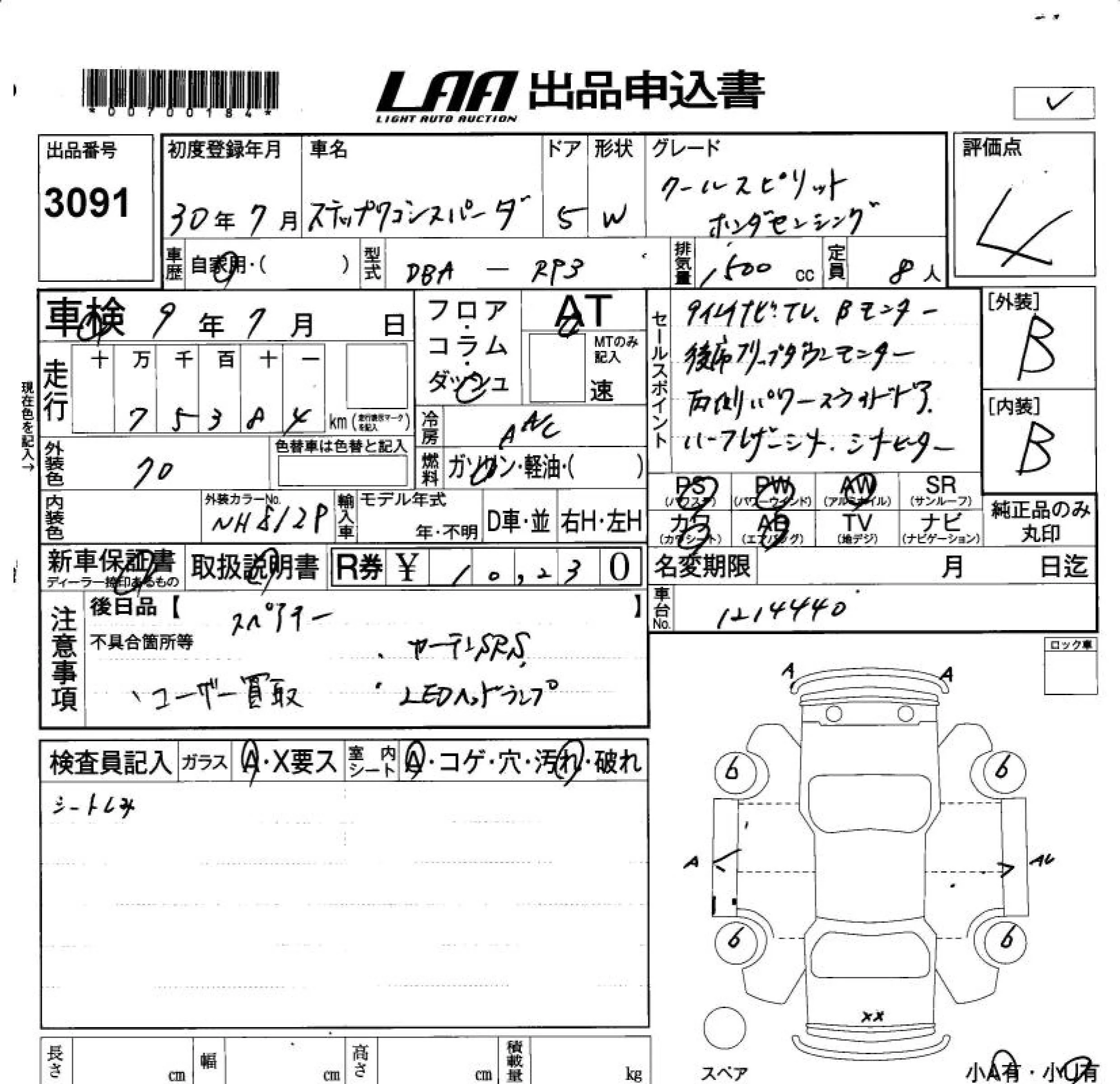 Honda STEP WAGON с аукциона Японии LAA Okayama лот № 3091