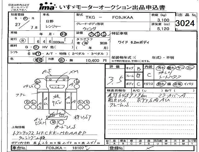 Hino RANGER с аукциона Японии Isuzu Kobe лот № 3024