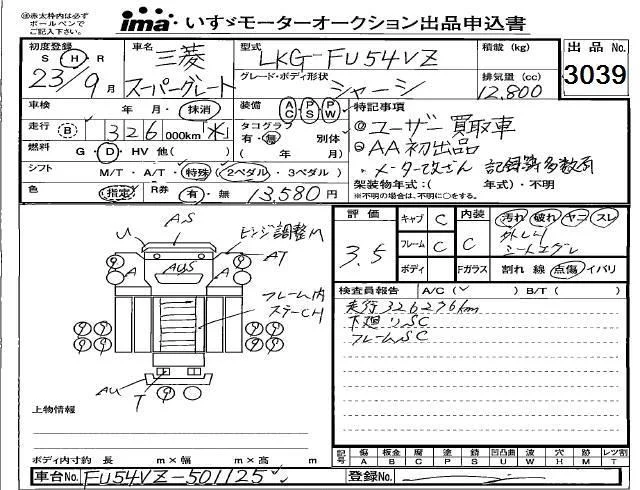 Mitsubishi FUSO TRUCK с аукциона Японии Isuzu Kobe лот № 3039