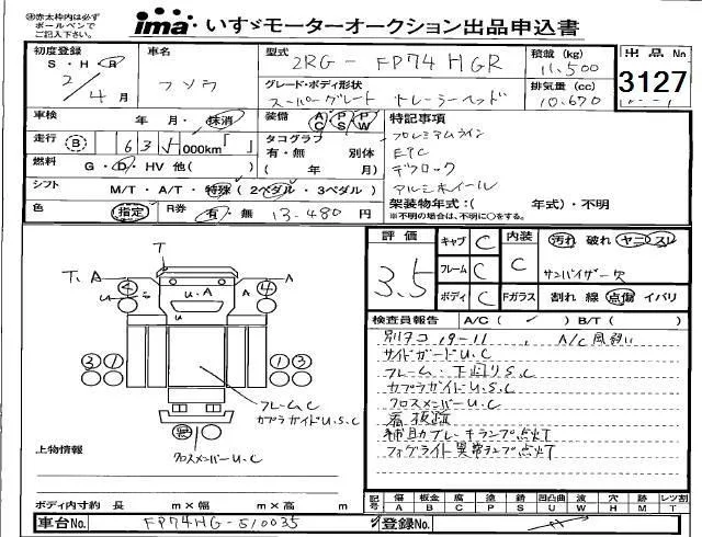 Mitsubishi FUSO TRUCK с аукциона Японии Isuzu Kobe лот № 3127
