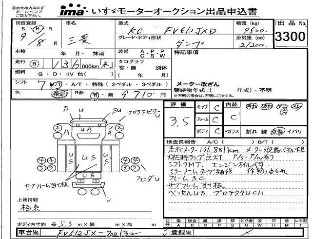 Mitsubishi FUSO TRUCK с аукциона Японии Isuzu Kobe лот № 3300