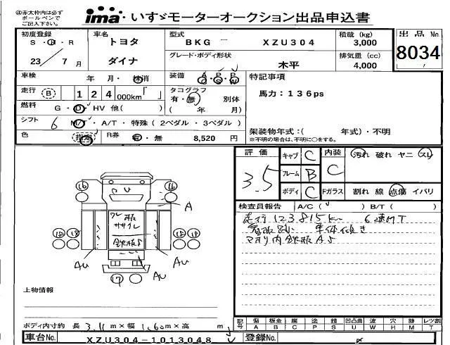 Toyota DYNA с аукциона Японии Isuzu Kobe лот № 8034