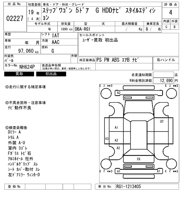 Honda STEP WAGON с аукциона Японии ARAI Bayside лот № 2227