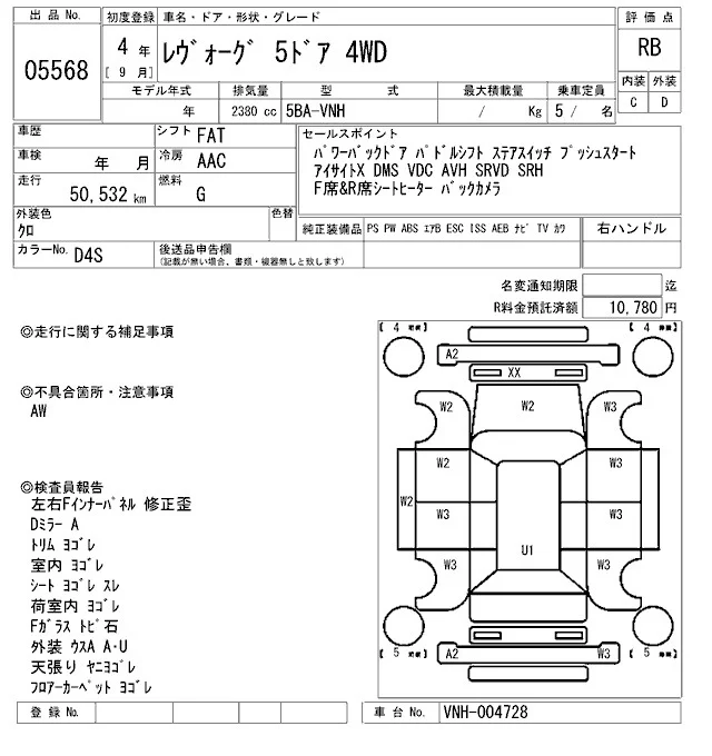 Subaru LEVORG с аукциона Японии ARAI Bayside лот № 5568