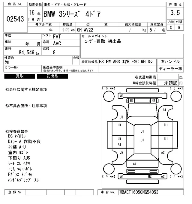 BMW 3-Series с аукциона Японии ARAI Bayside лот № 2543