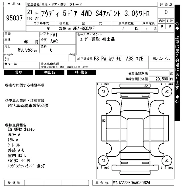 Audi S4 с аукциона Японии ARAI Bayside лот № 95037