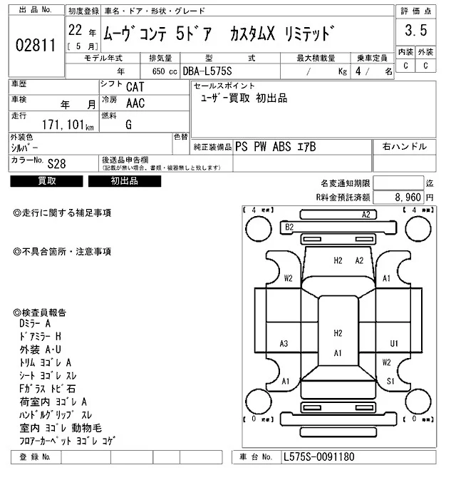 Daihatsu MOVE CONTE с аукциона Японии ARAI Bayside лот № 2811