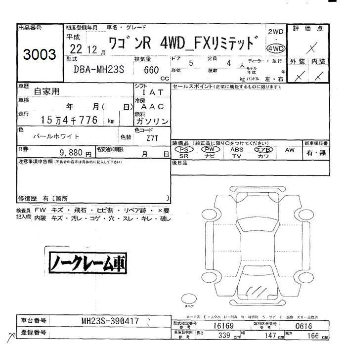 Suzuki WAGON R с аукциона Японии JU Hokkaido лот № 3003