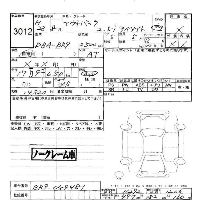 Subaru LEGACY OUTBACK с аукциона Японии JU Hokkaido лот № 3012