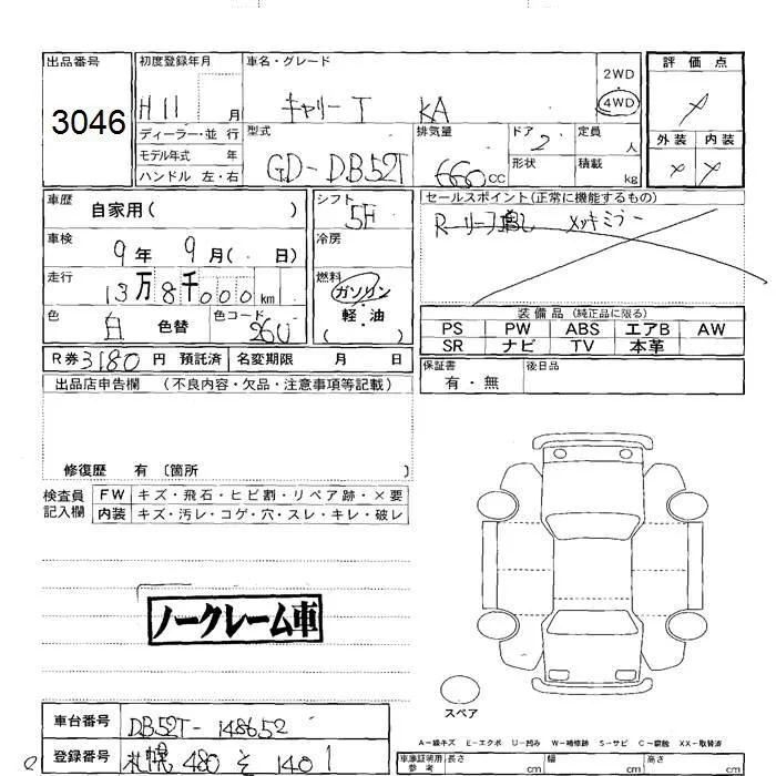 Suzuki CARRY TRUCK с аукциона Японии JU Hokkaido лот № 3046