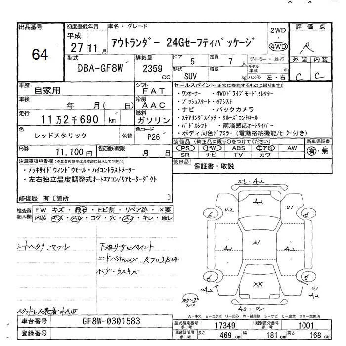 Mitsubishi OUTLANDER с аукциона Японии JU Hokkaido лот № 64