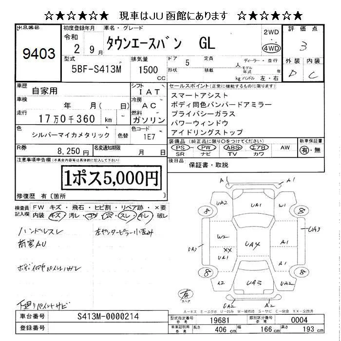 Toyota TOWN ACE VAN с аукциона Японии JU Hokkaido лот № 9403