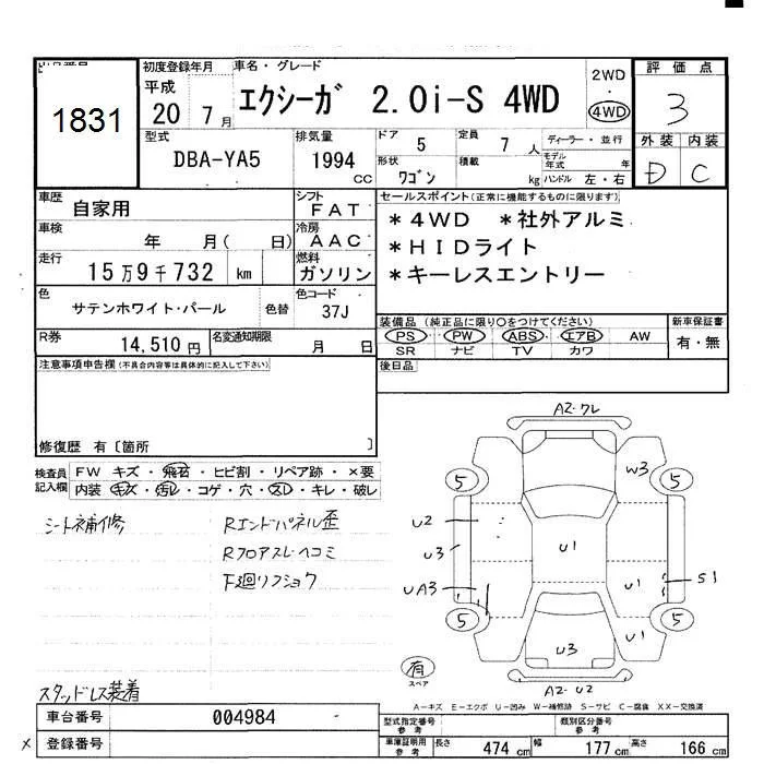 Subaru EXIGA с аукциона Японии JU Hokkaido лот № 1831