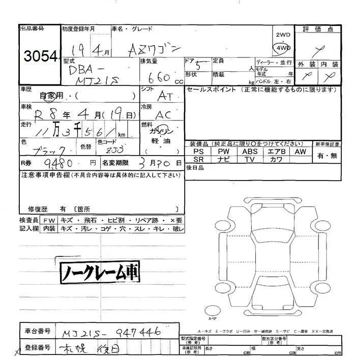 Mazda AZ WAGON с аукциона Японии JU Hokkaido лот № 3054
