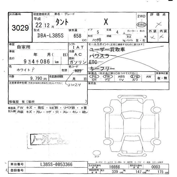 Daihatsu TANTO с аукциона Японии JU Hokkaido лот № 3029