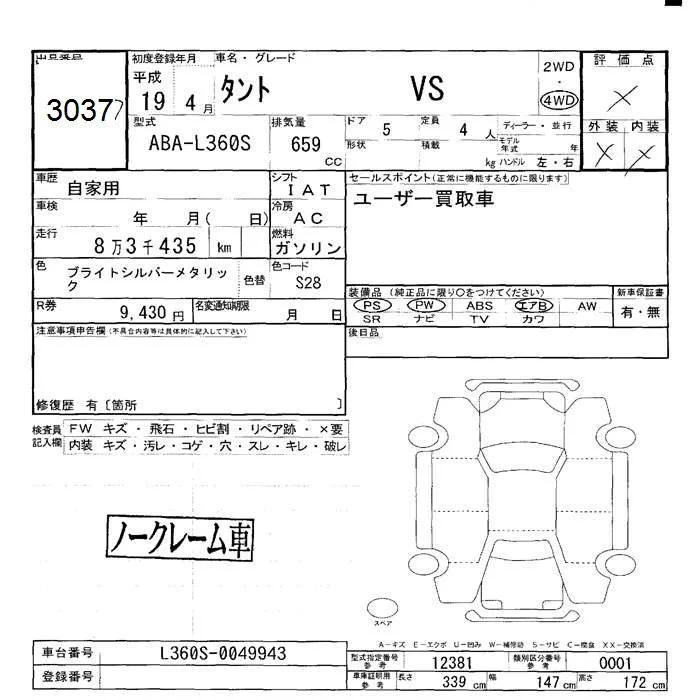 Daihatsu TANTO с аукциона Японии JU Hokkaido лот № 3037