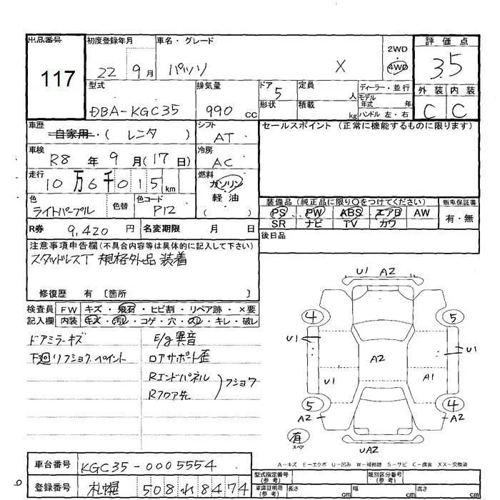Toyota PASSO с аукциона Японии JU Hokkaido лот № 117