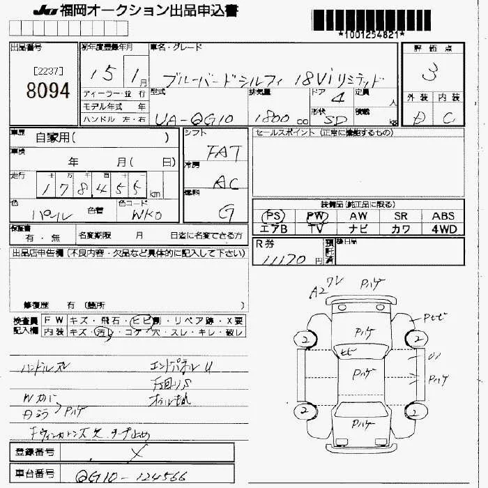 Nissan SYLPHY с аукциона Японии JU Fukuoka лот № 8094