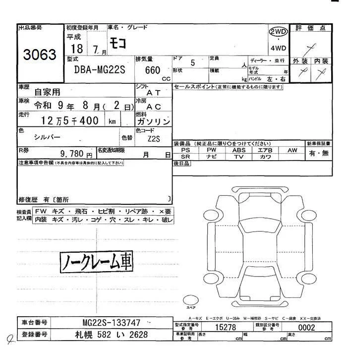 Nissan MOCO с аукциона Японии JU Hokkaido лот № 3063