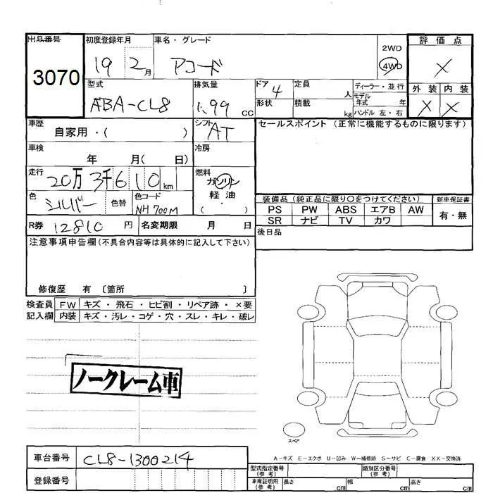Honda ACCORD с аукциона Японии JU Hokkaido лот № 3070