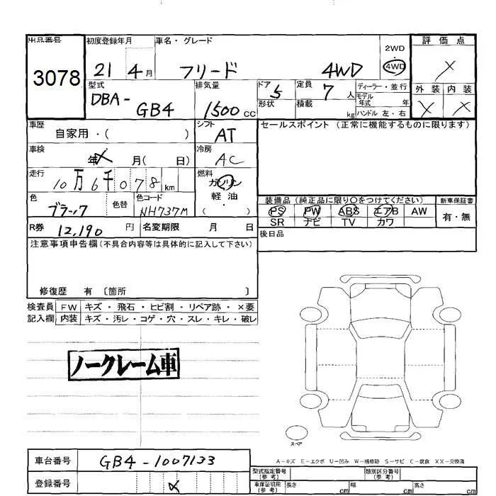 Honda FREED с аукциона Японии JU Hokkaido лот № 3078