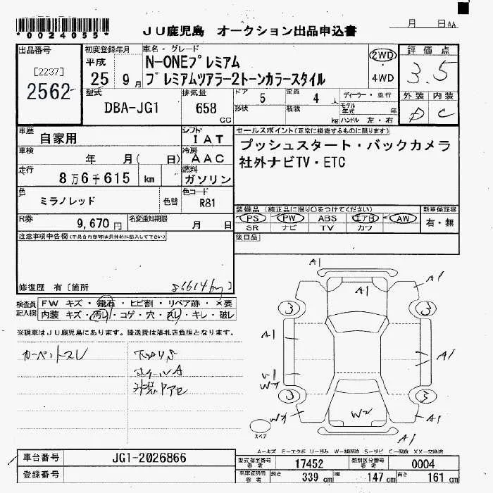 Honda N ONE с аукциона Японии JU Fukuoka лот № 2562