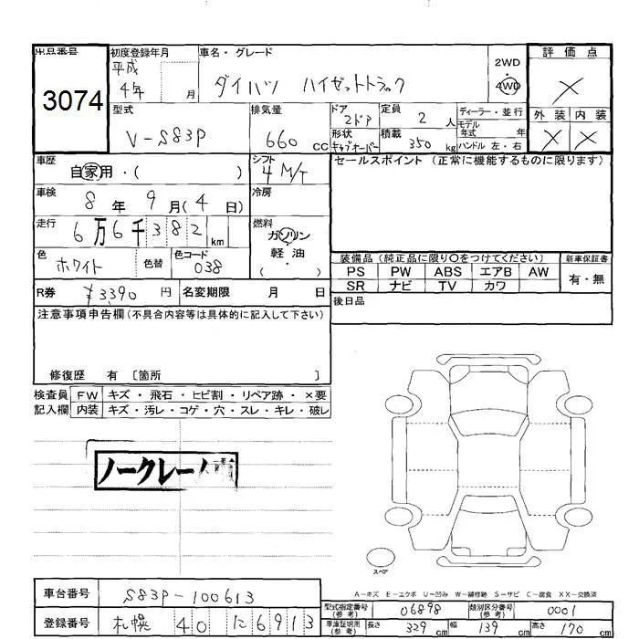 Daihatsu HIJET TRUCK с аукциона Японии JU Hokkaido лот № 3074