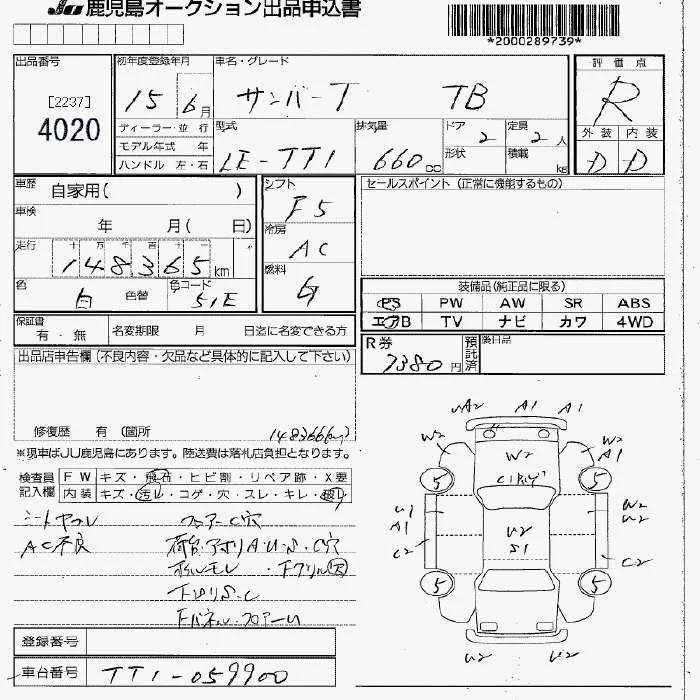 Subaru SAMBAR с аукциона Японии JU Fukuoka лот № 4020