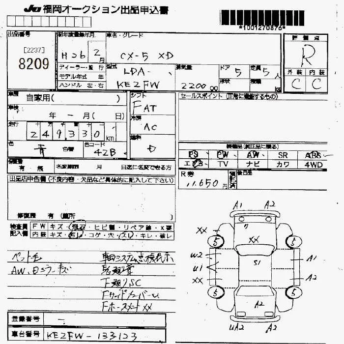 Mazda CX-5 с аукциона Японии JU Fukuoka лот № 8209