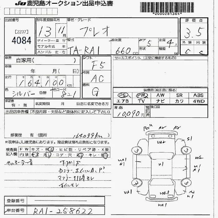 Subaru PLEO с аукциона Японии JU Fukuoka лот № 4084