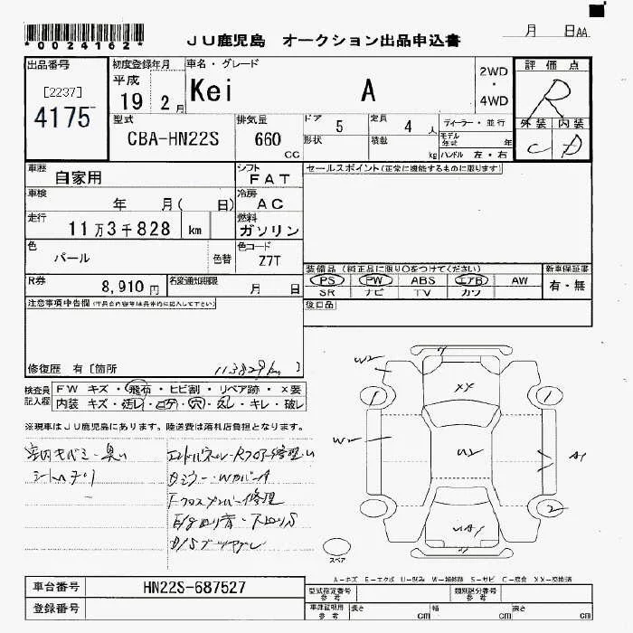 Suzuki KEI с аукциона Японии JU Fukuoka лот № 4175