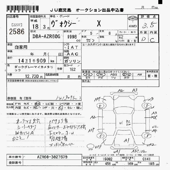 Toyota VOXY с аукциона Японии JU Fukuoka лот № 2586