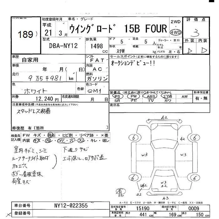 Nissan WINGROAD с аукциона Японии JU Hokkaido лот № 189