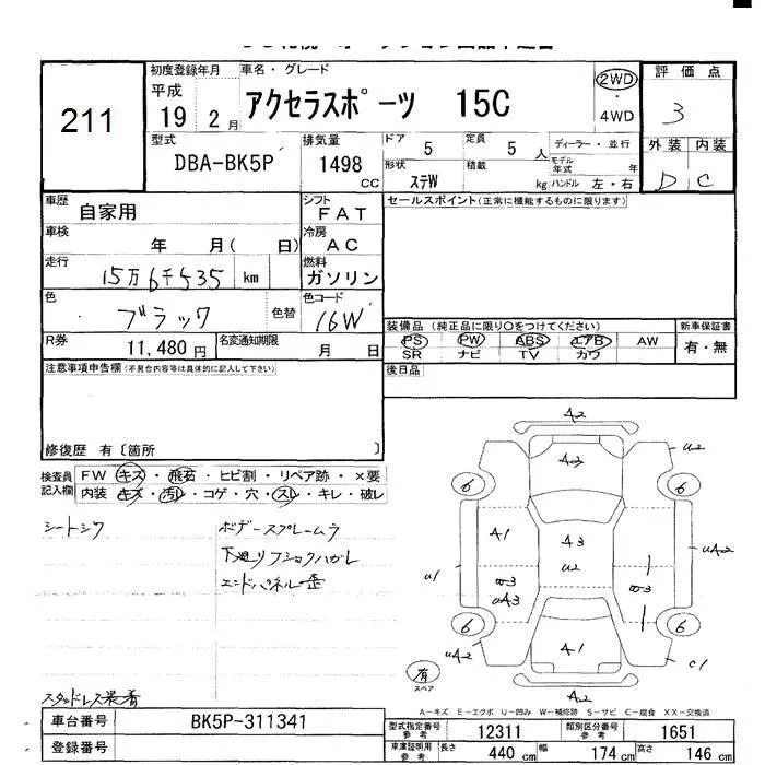 Mazda AXELA с аукциона Японии JU Hokkaido лот № 211