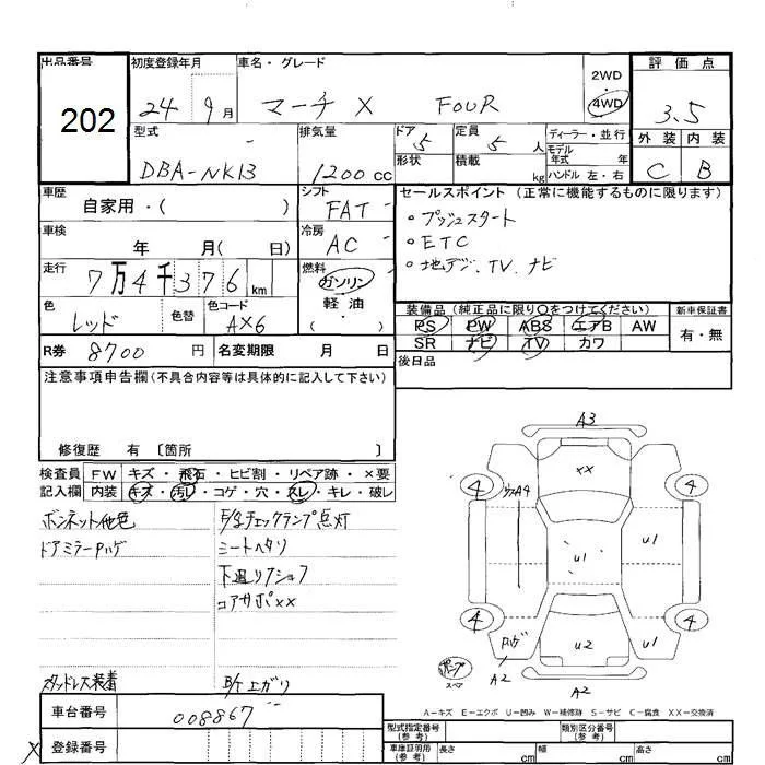 Nissan MARCH с аукциона Японии JU Hokkaido лот № 202