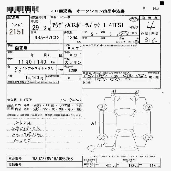 Audi A3 с аукциона Японии JU Fukuoka лот № 2151
