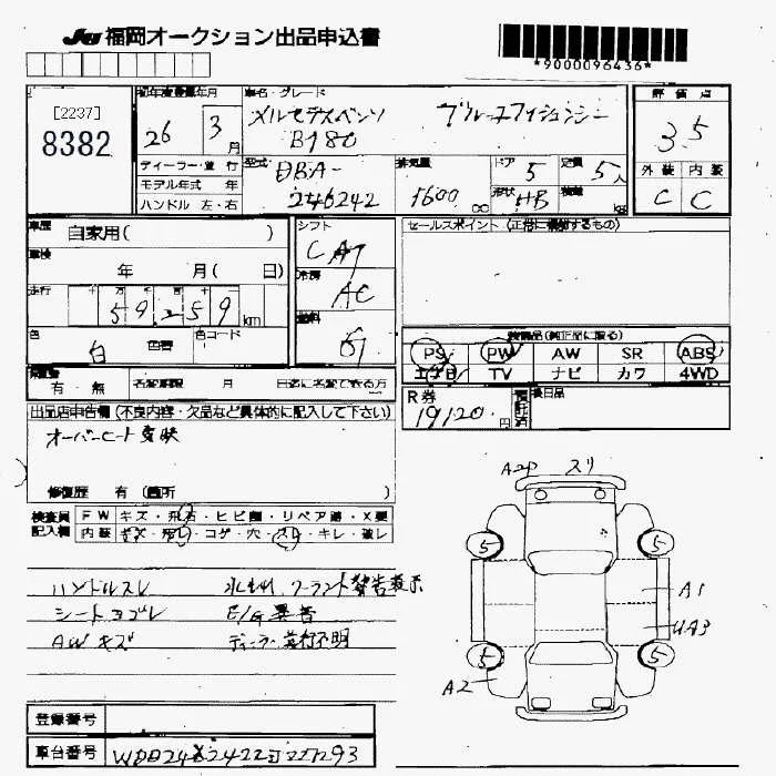 Mercedes-Benz B CLASS с аукциона Японии JU Fukuoka лот № 8382