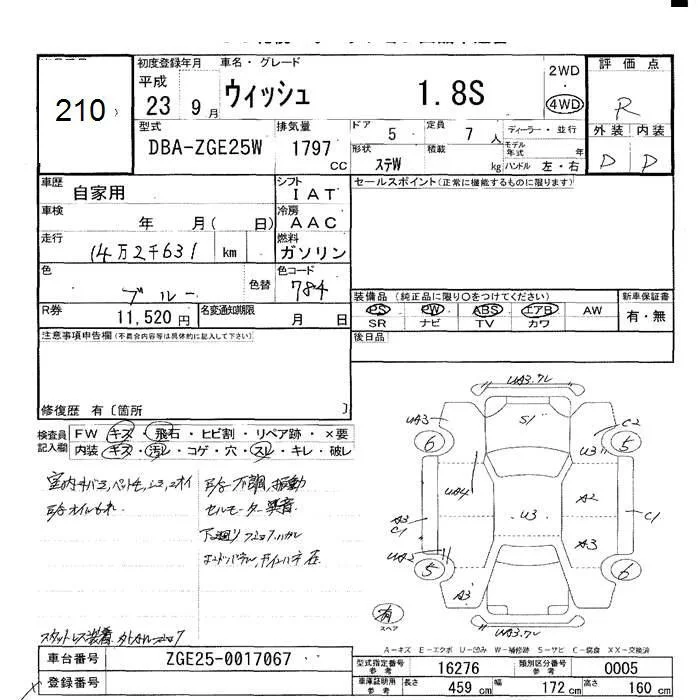 Toyota WISH с аукциона Японии JU Hokkaido лот № 210