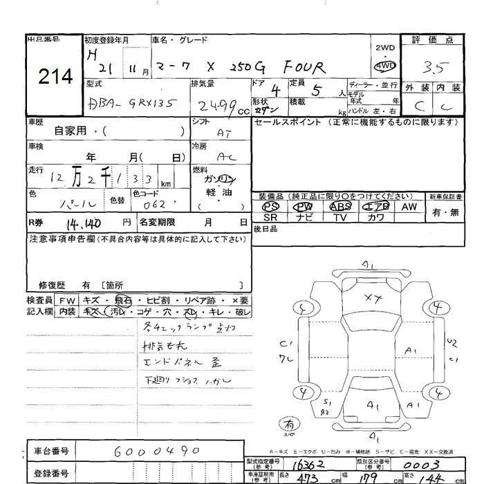 Toyota MARK X с аукциона Японии JU Hokkaido лот № 214
