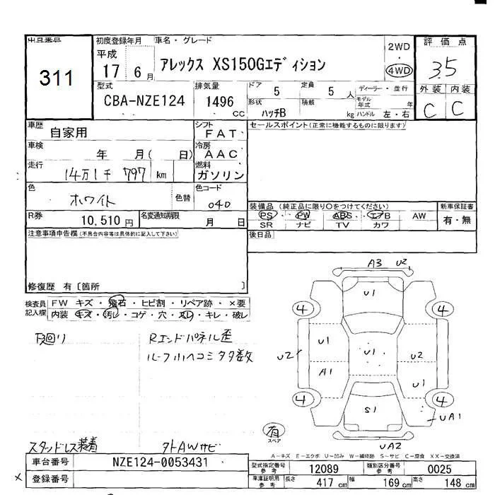 Toyota ALLEX с аукциона Японии JU Hokkaido лот № 311