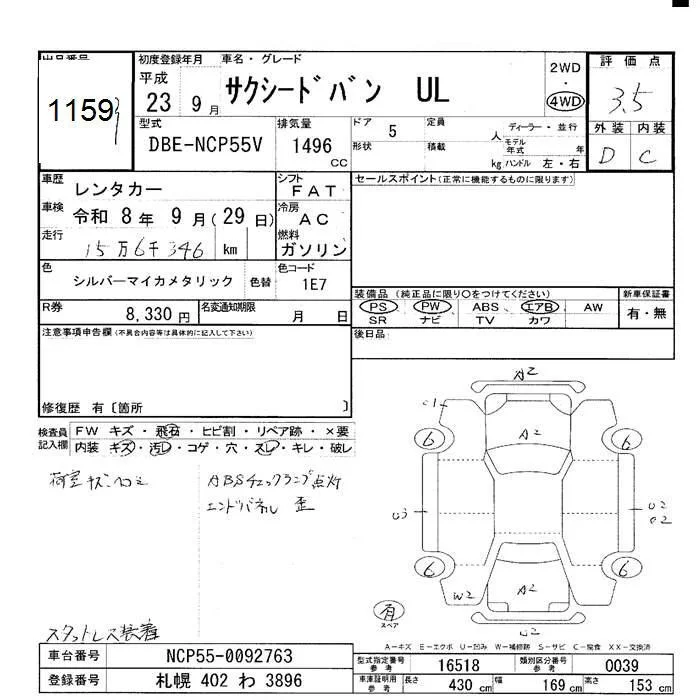 Toyota SUCCEED с аукциона Японии JU Hokkaido лот № 1159