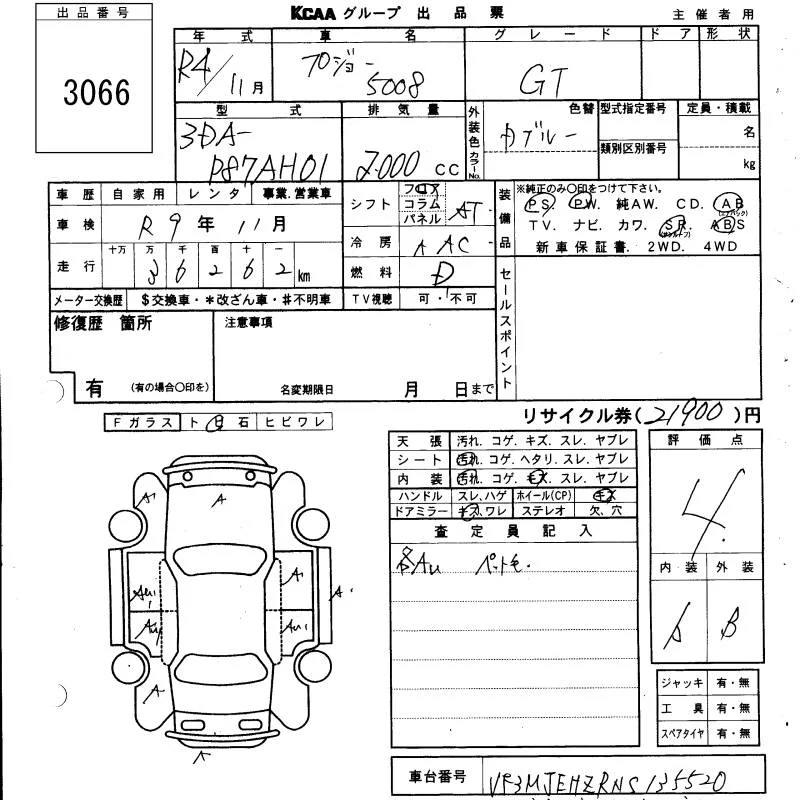 Peugeot 5008 с аукциона Японии KCAA Yamaguchi лот № 3066