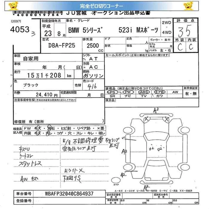BMW 5-Series с аукциона Японии JU Miyagi лот № 4053