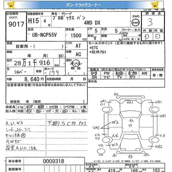 Toyota PROBOX с аукциона Японии JU Miyagi лот № 9017