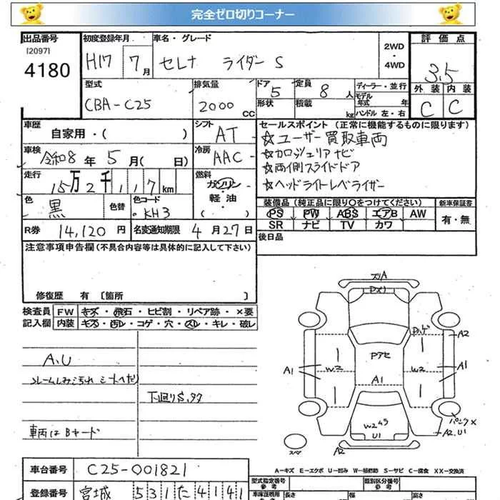 Nissan SERENA с аукциона Японии JU Miyagi лот № 4180