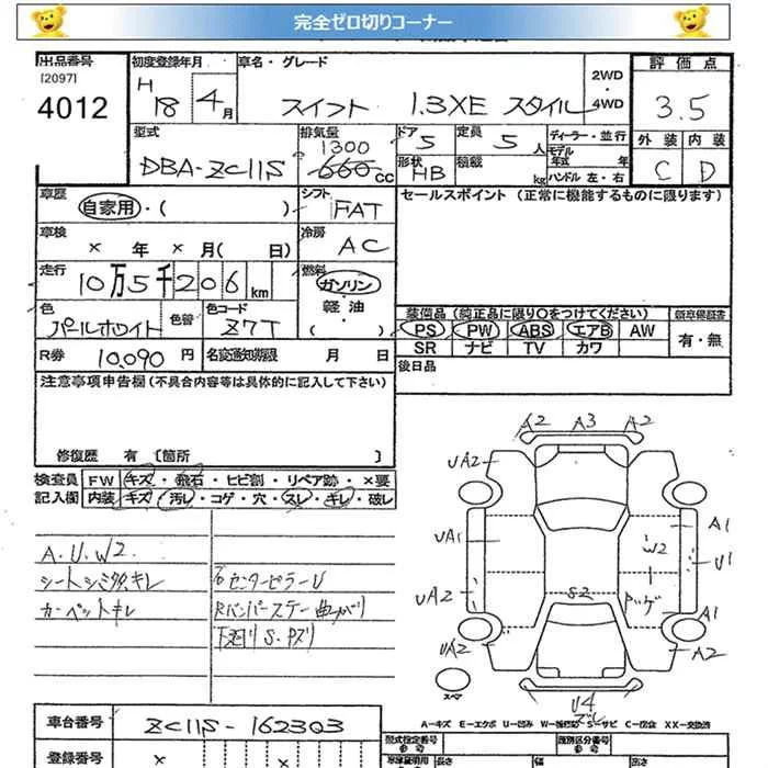 Suzuki SWIFT с аукциона Японии JU Miyagi лот № 4012