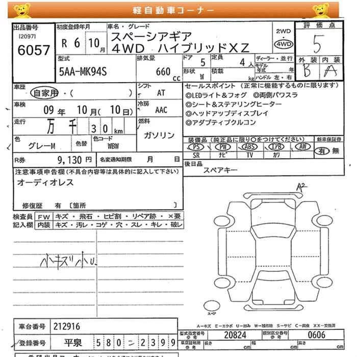 Suzuki SPACIA GEAR с аукциона Японии JU Miyagi лот № 6057