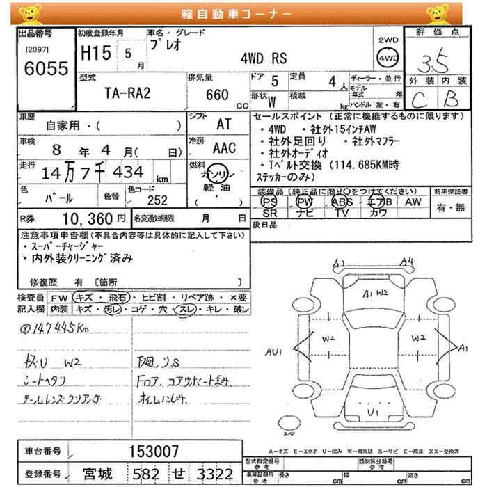 Subaru PLEO с аукциона Японии JU Miyagi лот № 6055